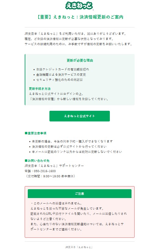 『JR東日本「えきねっと」をご利用いただき、誠にありがとうございます。