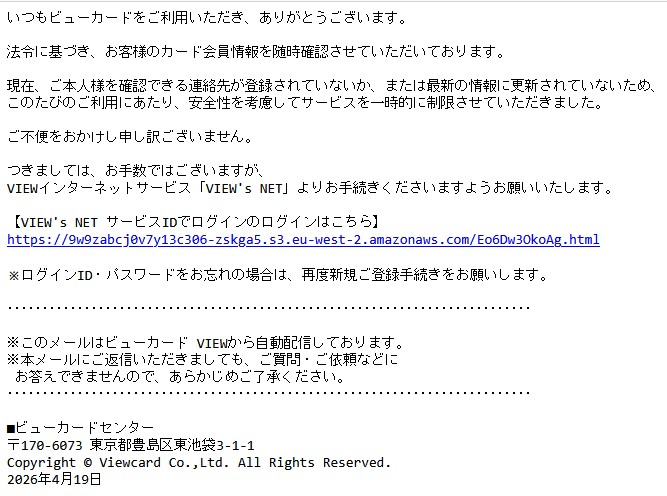 『いつもビューカードをご利用いただき、ありがとうございます。』
