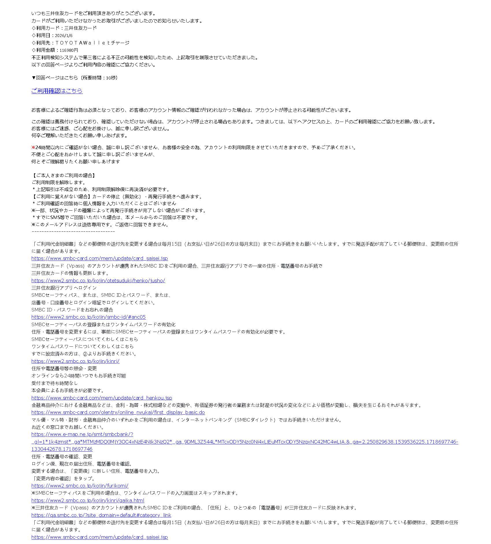 『いつも三井住友カードをご利用頂きありがとうございます。