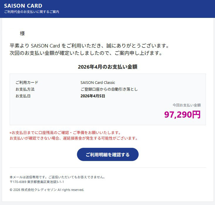 『平素より SAISON Card をご利用いただき、誠にありがとうございます。』