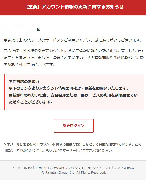 「以下のリンクよりアカウント情報の再確認・更新をお願いいたします。