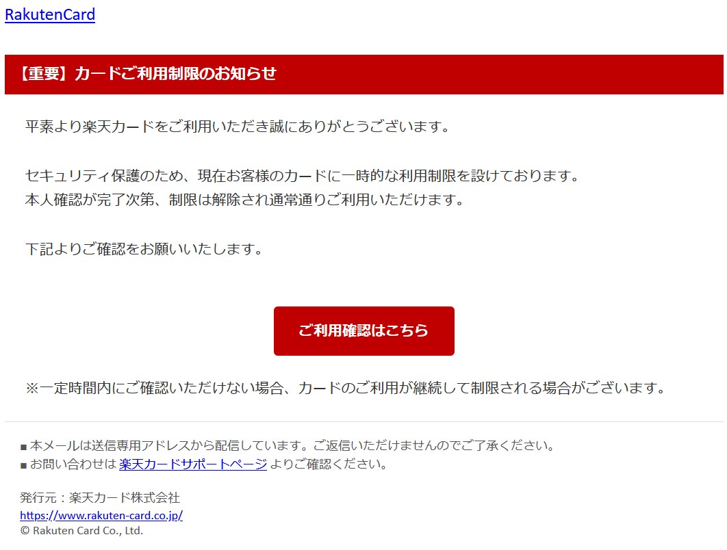 「平素より楽天カードをご利用いただき誠にありがとうございます。」