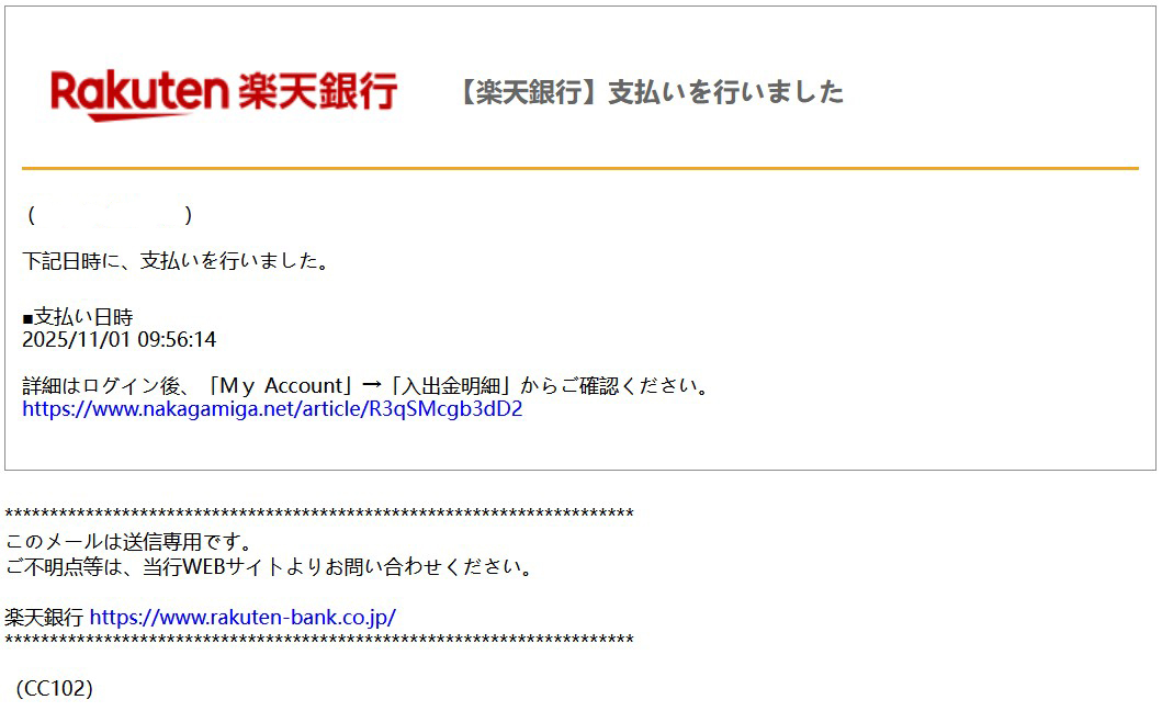 挙句に、ドメイン@gujo-hospital.jpは楽天銀行のドメインではありません。
