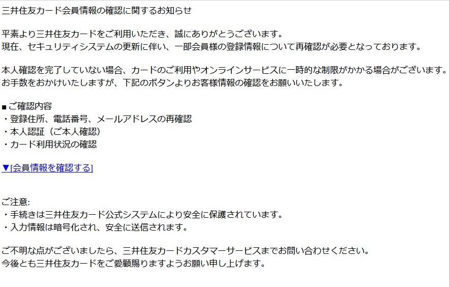 『平素より三井住友カードをご利用いただき、誠にありがとうございます。