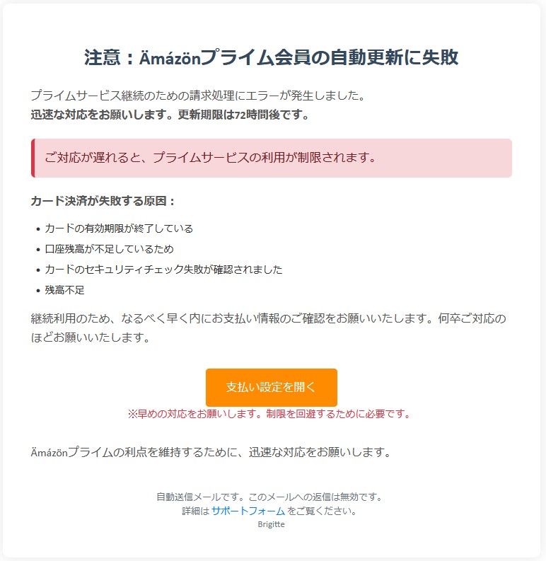 『注意:Ämázönプライム会員の自動更新に失敗』