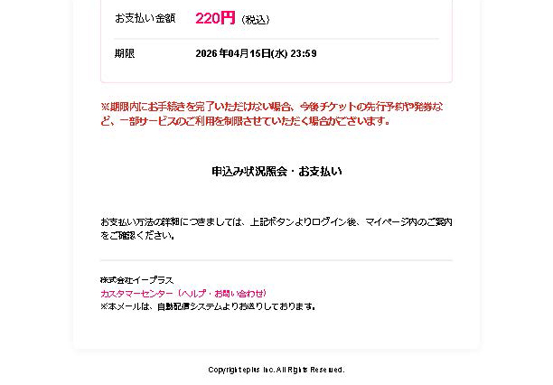 ※イープラスのメールの正しいドメインは「eplus.co.jp」ですよくあるご質問より