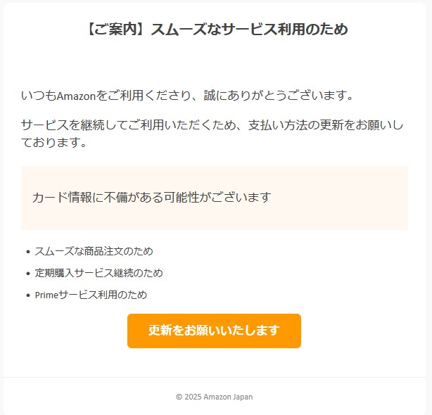『サービスを継続してご利用いただくため、支払い方法の更新をお願いしております。』