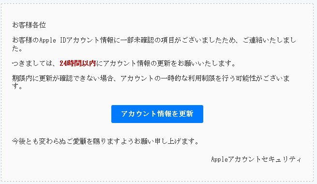『つきましては、24時間以内にアカウント情報の更新をお願いいたします。』