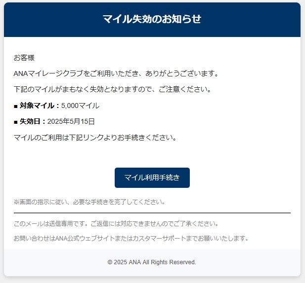 “【ANAマイレージクラブ】ポイント失効予定通知”(No.-KS-23967137615)