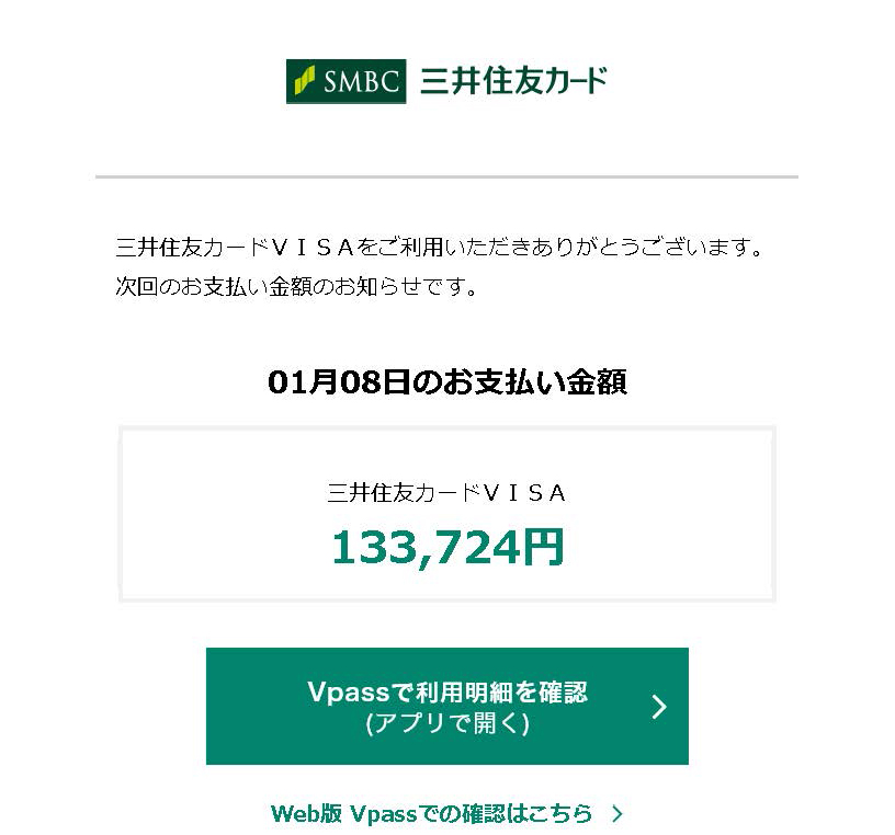 三井住友カードVISA 133,724円」