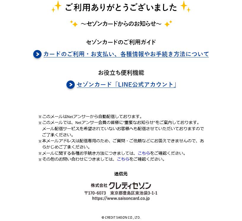 『いつもセゾンカードをご利用いただきまして、ありがとうございます。』