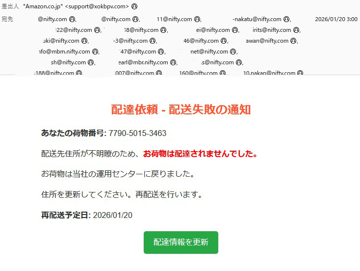 『配送先住所が不明瞭のため、お荷物は配達されませんでした。