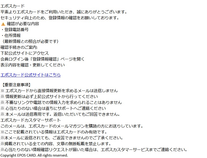 『平素よりエポスカードをご利用いただき、誠にありがとうございます。