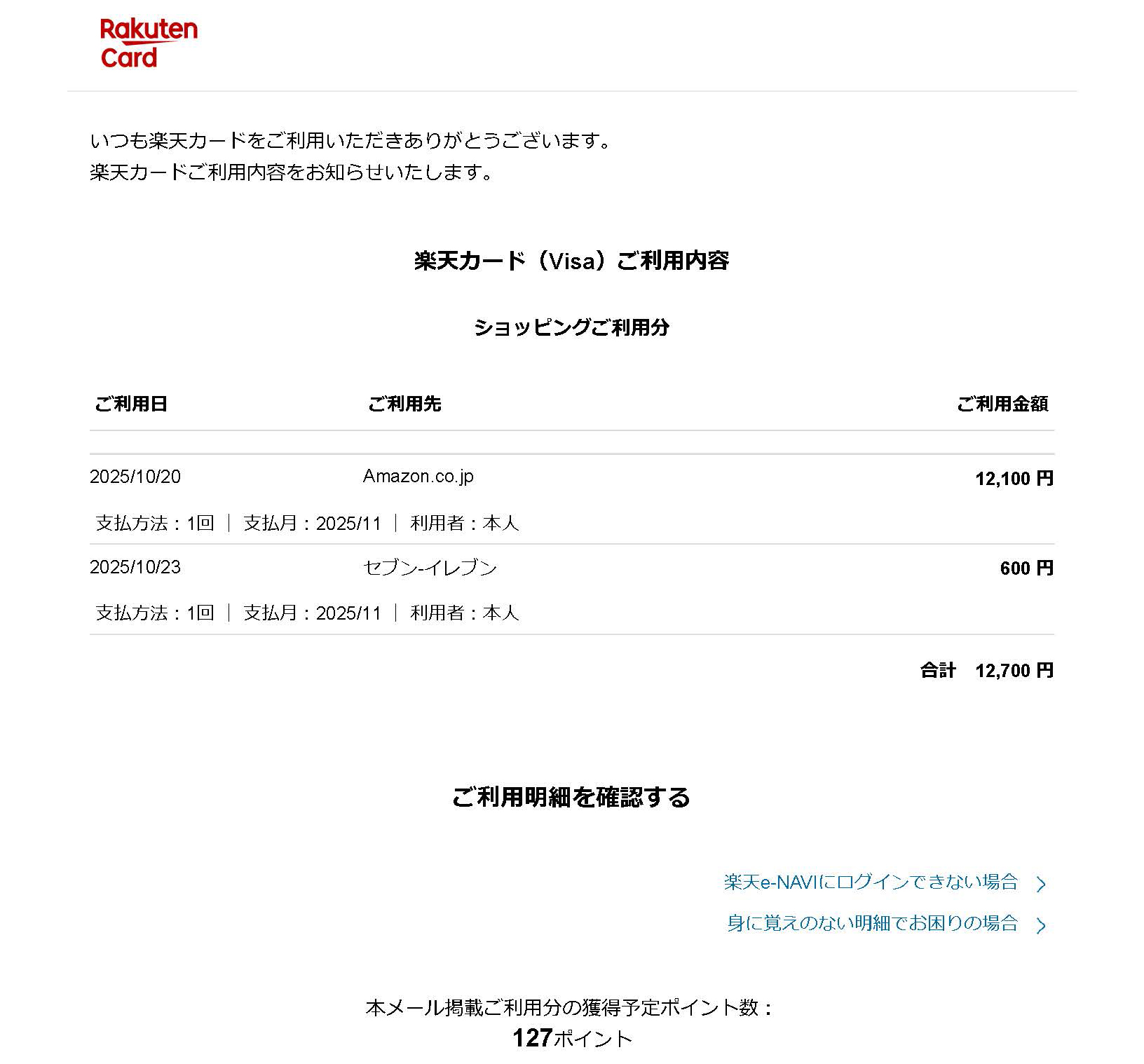 支払方法:1回 | 支払月:2025/11 | 利用者:本人
