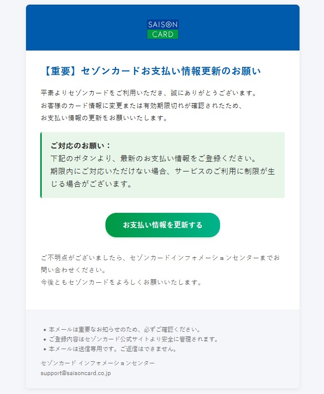 『【重要】セゾンカードお支払い情報更新のお願い』