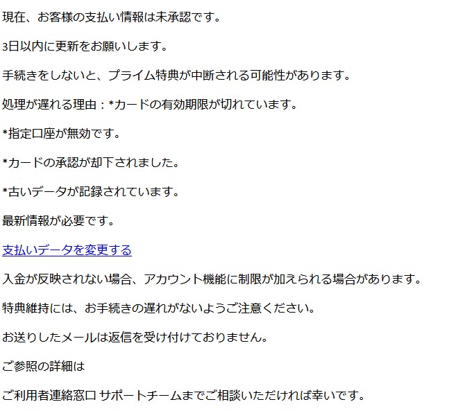 とても大手企業が作成した文書とは思えない内容のメールは詐欺メールです。