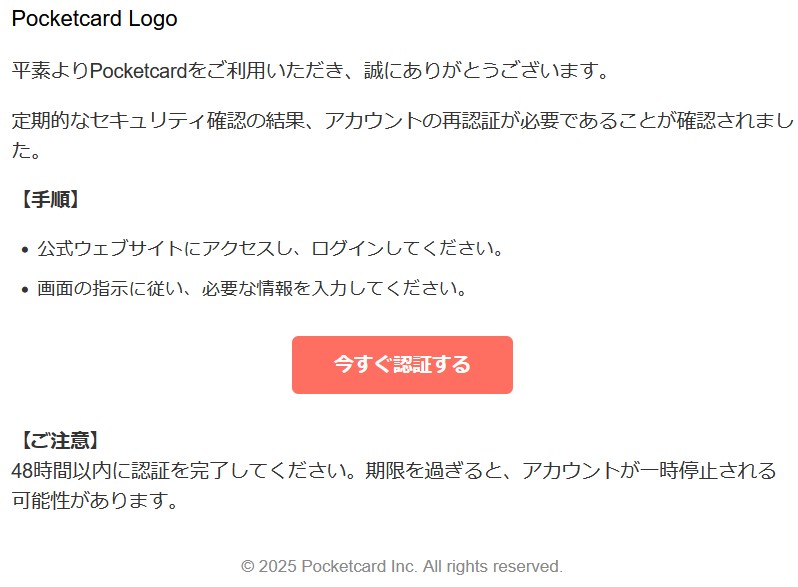 48時間以内に認証を完了してください。期限を過ぎると、アカウントが一時停止される可能性があります