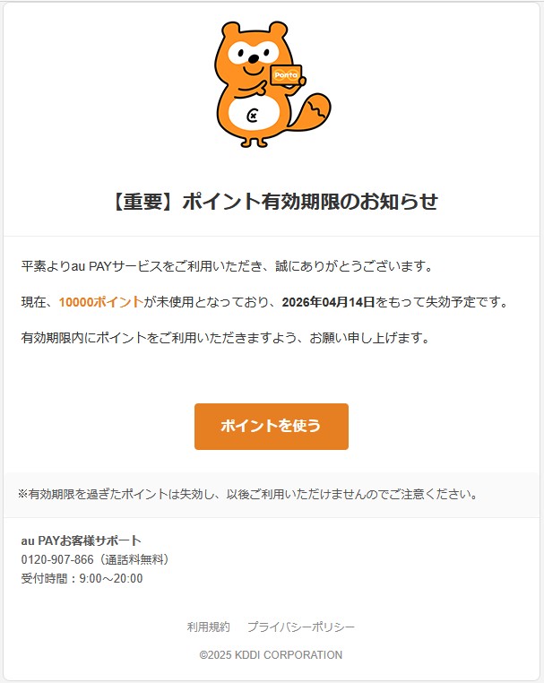 平素よりau PAYサービスをご利用いただき、誠にありがとうございます。