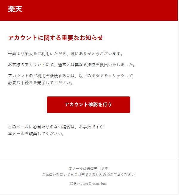 「お客様のアカウントにて、通常とは異なる操作を検出いたしました。」