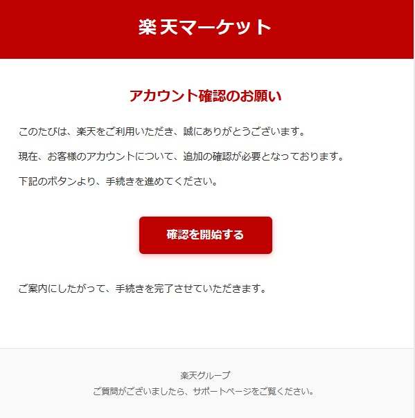 「現在、お客様のアカウントについて、追加の確認が必要となっております。