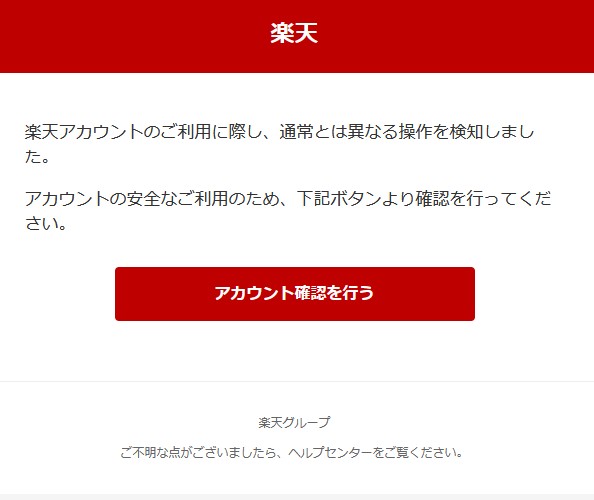 「楽天アカウントのご利用に際し、通常とは異なる操作を検知しました。」