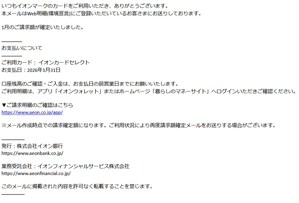 『いつもイオンマークのカードをご利用いただき、ありがとうございます。