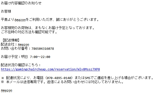 アマゾンからの連絡は、あくまで配送状況の連絡ですよ?