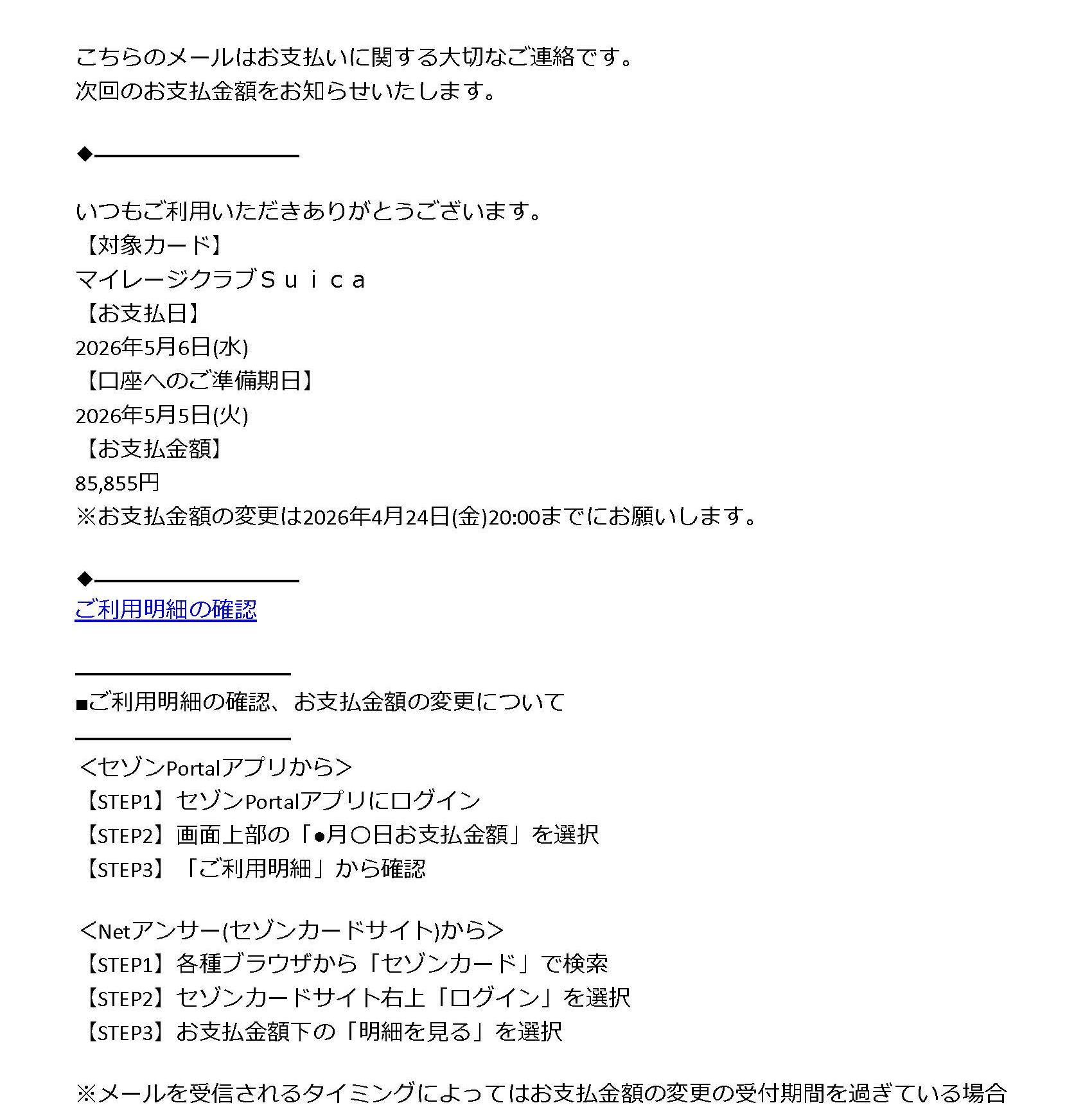 こちらのメールはお支払いに関する大切なご連絡です。