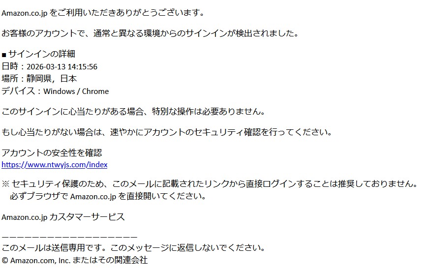 もし心当たりがない場合は、速やかにアカウントのセキュリティ確認を行ってください。』