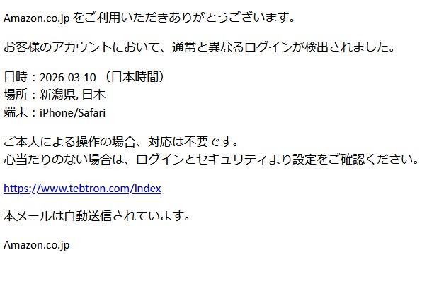 『お客様のアカウントにおいて、通常と異なるログインが検出されました。』