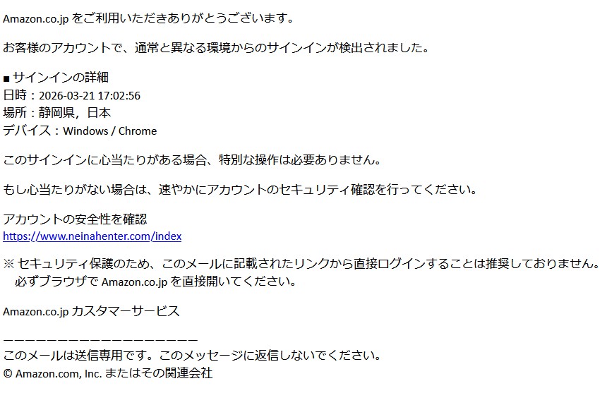 『お客様のアカウントで、通常と異なる環境からのサインインが検出されました。』
