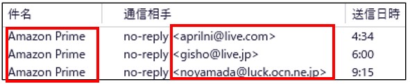 - 送信元アドレス:aprilni@live.com、gisho@live.jp、noyamada@luck.ocn.ne.jp