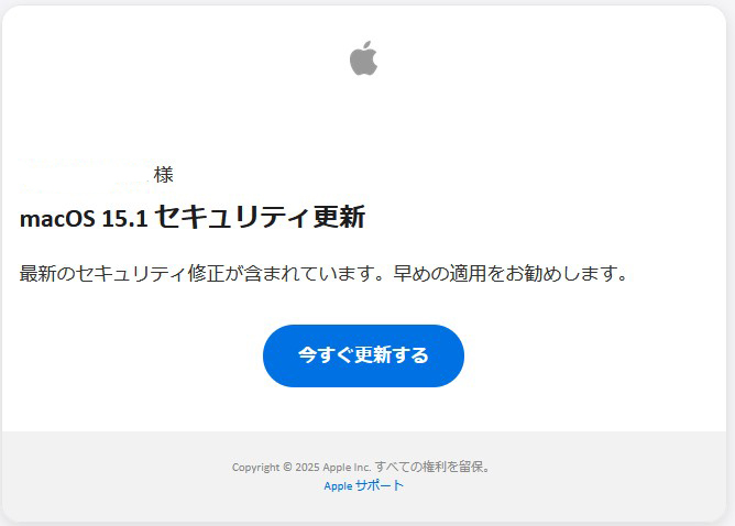 今回は”アップル(Apple)”を語る詐欺メールです。