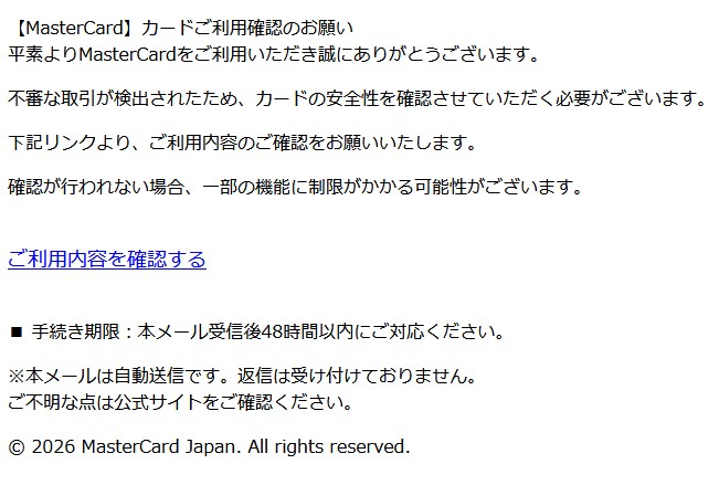 「平素よりMasterCardをご利用いただき誠にありがとうございます。」