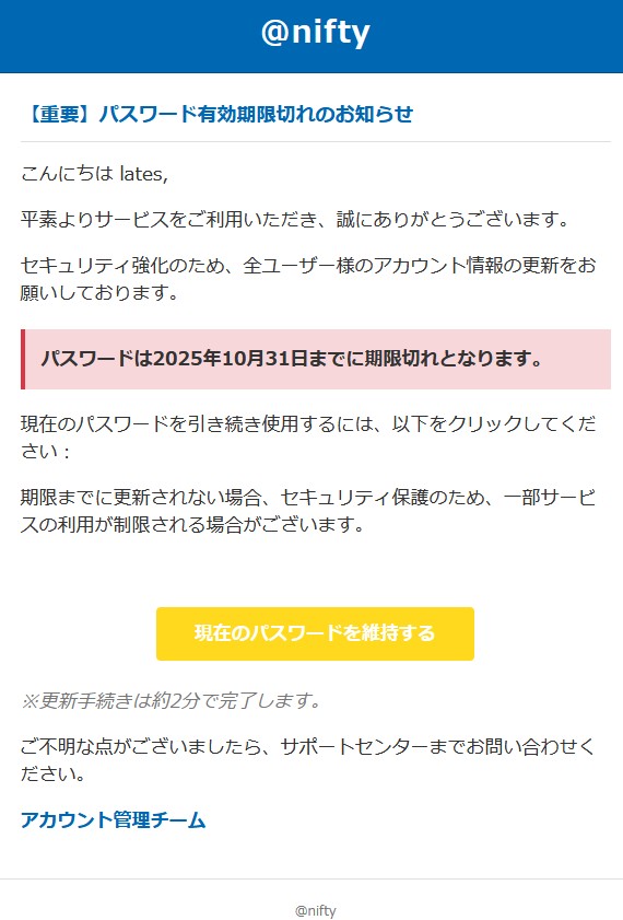 「期限までに更新されない場合、セキュリティ保護のため、一部サービスの利用が制限される場合がございます。」