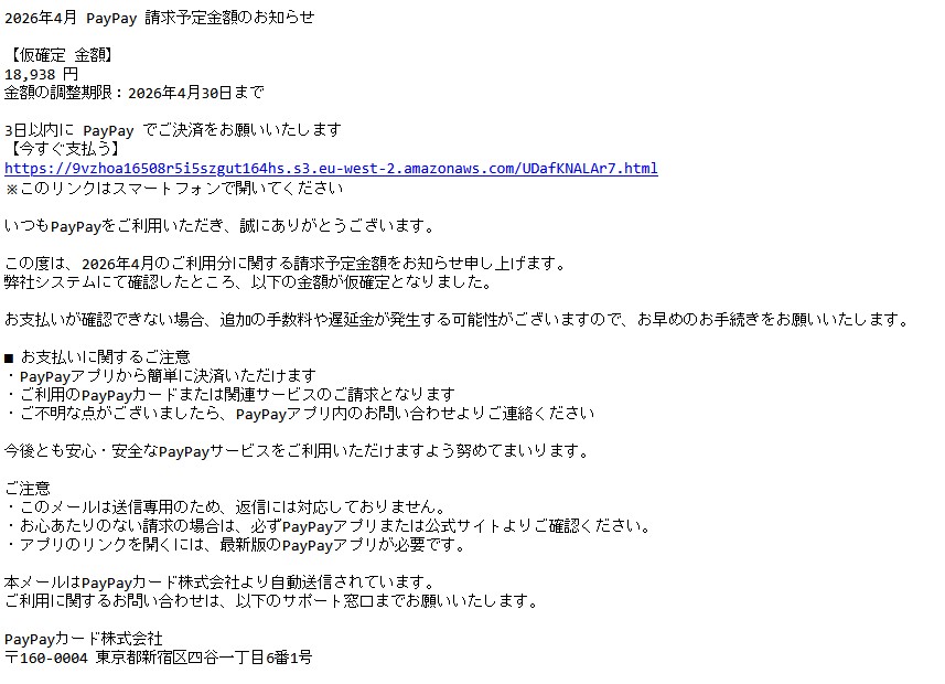 「この度は、2026年4月のご利用分に関する請求予定金額をお知らせ申し上げます。」
