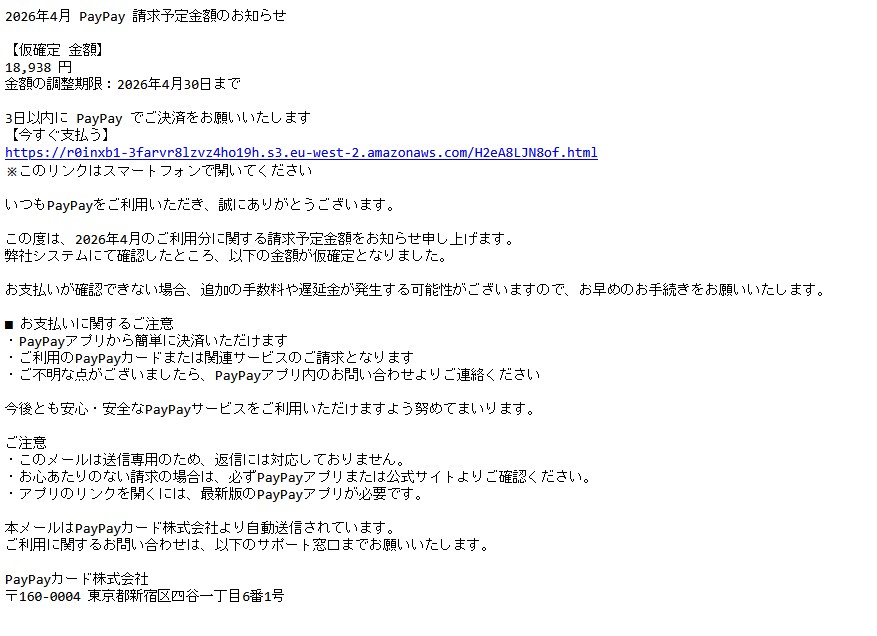 「この度は、2026年4月のご利用分に関する請求予定金額をお知らせ申し上げます。」