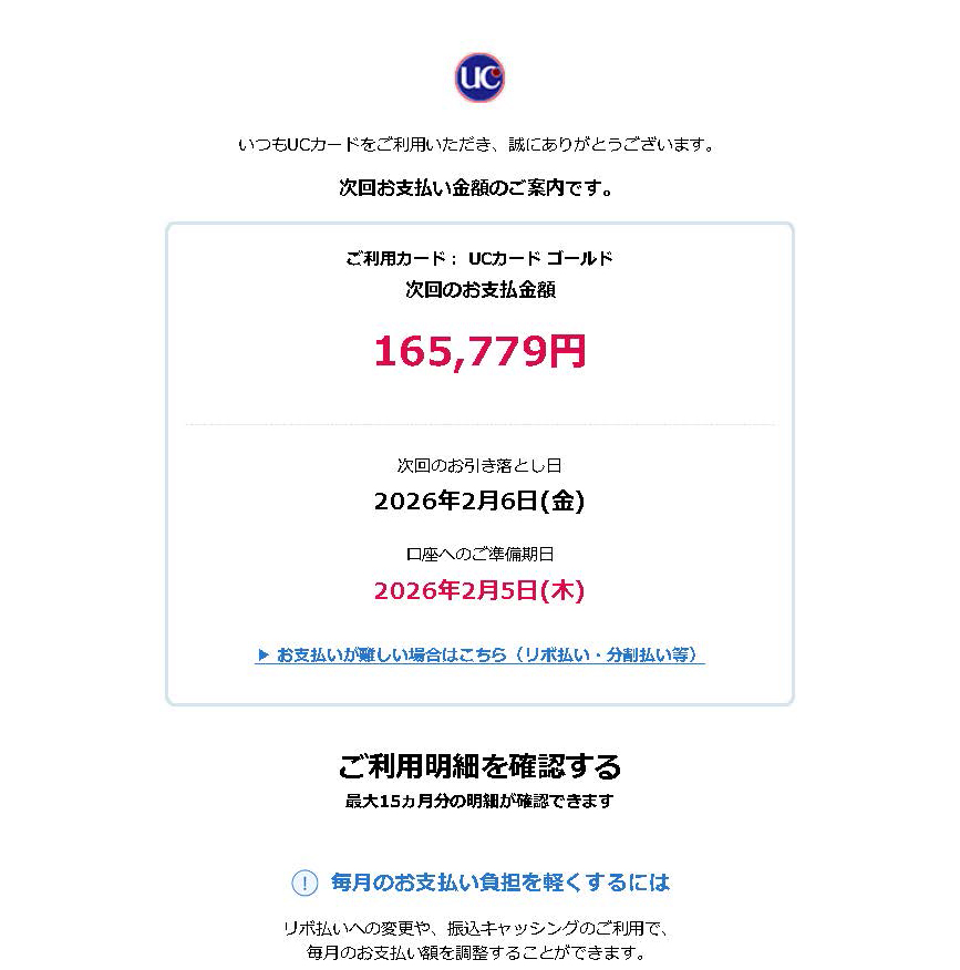 『おいつもUCカードをご利用いただき、誠にありがとうございます。